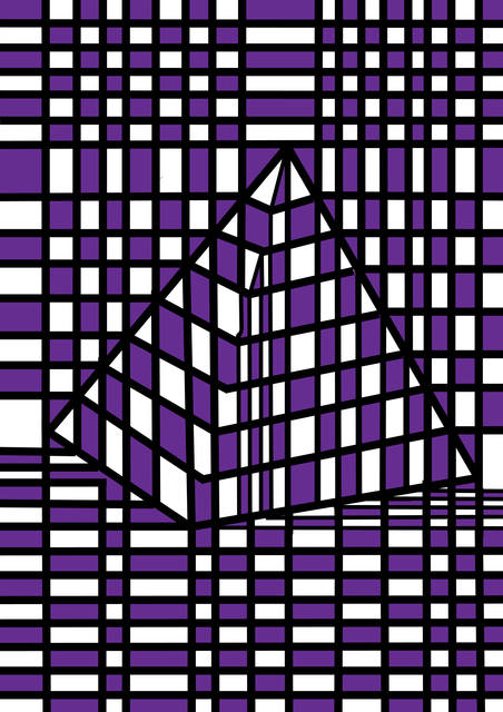 太い黒のラインでイラスト中央にピラミッドの様なデザインを・・・