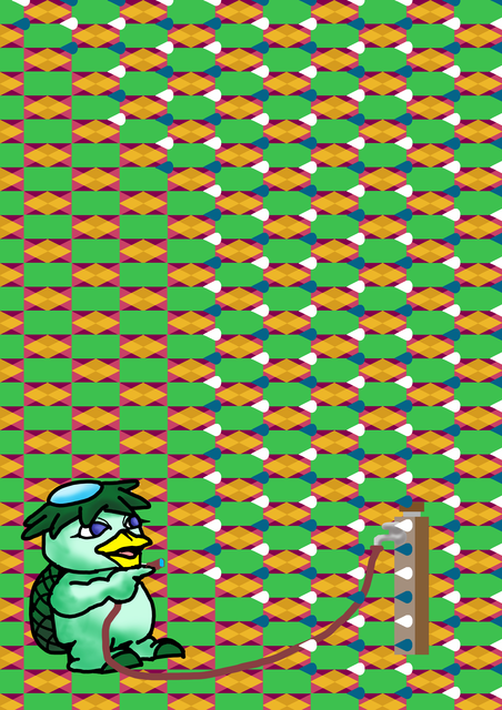 次にキャラクターのカッパと、水道の蛇口などを描いて、