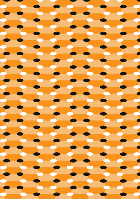 オレンジ系2色の4角形(台形) を1つのルールに基づいて配列して、