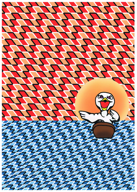 最後に夕日と鳥キャラを描いて出来上がりです