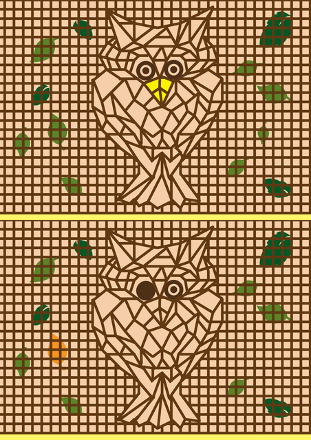 だまし絵技法のヘルマン格子でフクロウなどを作成して・・・