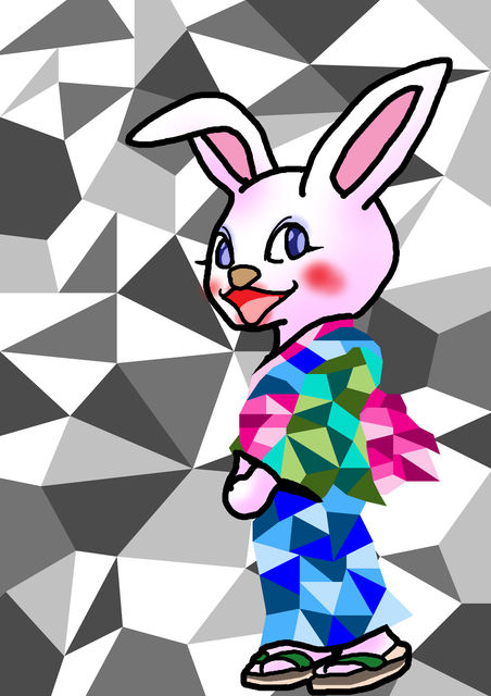 次にウサギの衣装はアカ系、アオ系、ミドリ系の色のマスを並べ描いて、