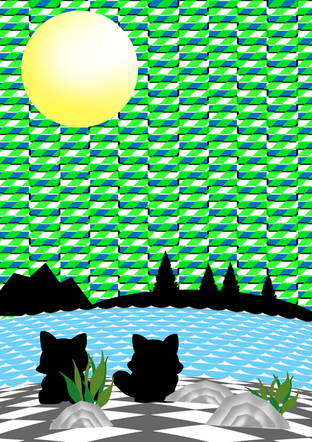 そのマスの境目に白・黒ラインを描いて・・ さらに満月を描いています。