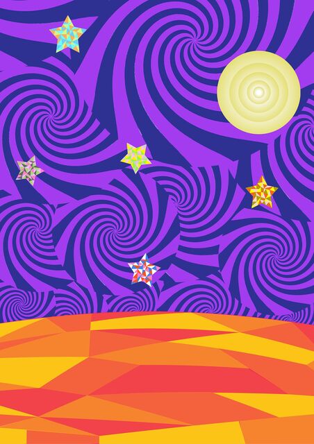 渦巻き模様の円を幾つも重ね描いて、