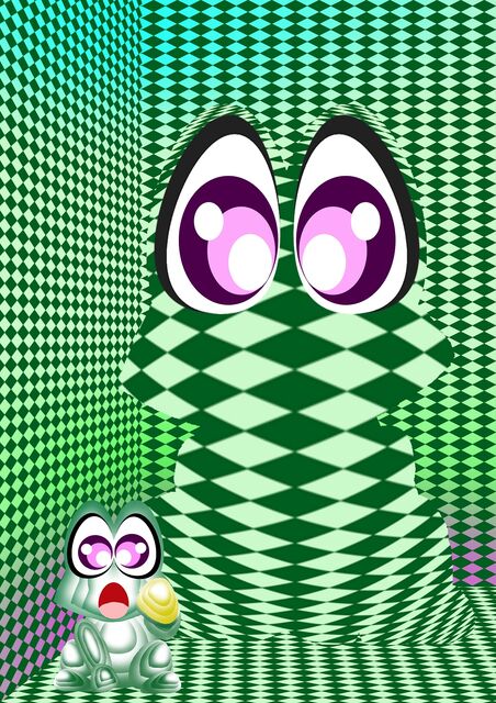 さらに背景の濃いミドリのひし形模様を見ていると?