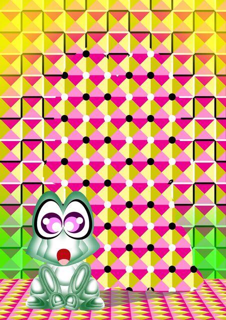 その後ろには白・黒円と白・黒ラインが見えますが・・・
