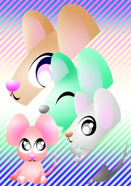 ブラウン、ミドリ、白ネズミは顔、