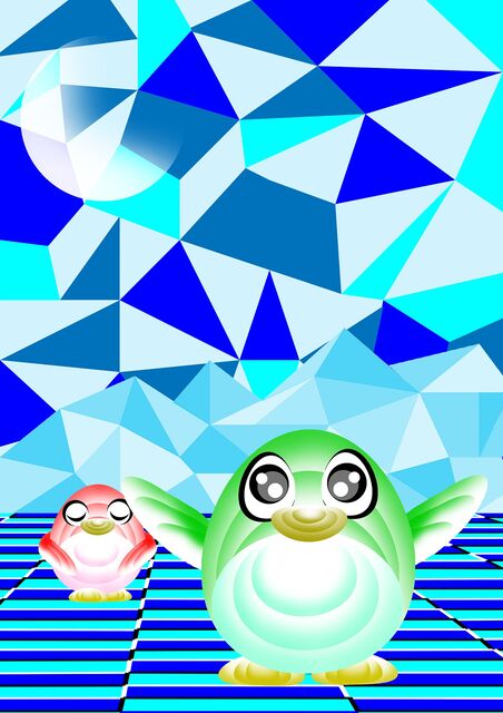 次に氷山をイメージした山は水色系色の多色多角形のマスで・・