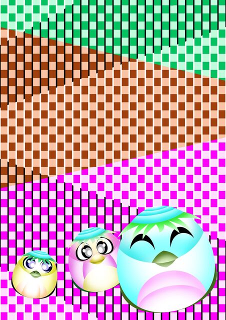 ピンク系2色の計6色の四角形のマスをイラスト全体に描いています。