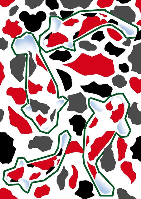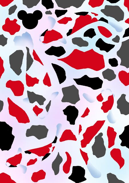 アカ系色の色んな形のマスをイラスト全体に描いています。