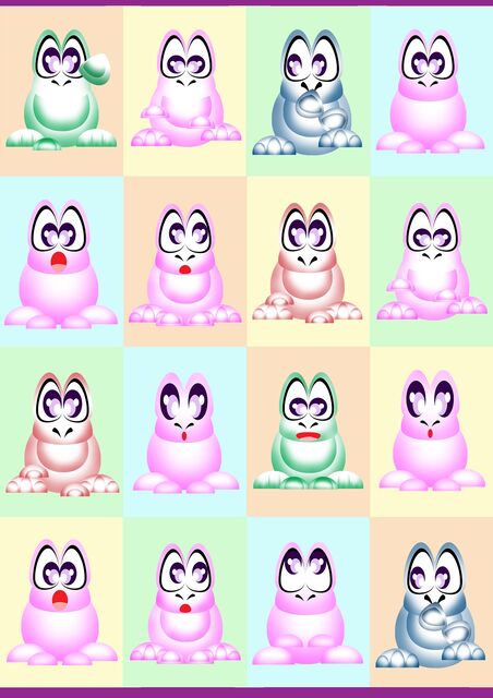 《ペア=同じ色、姿(ポーズ)かたちが同じカエル》