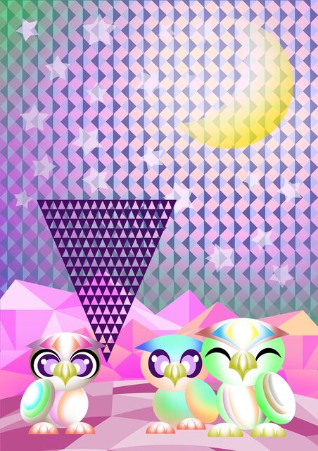 地面は数色のムラサキ系色の多角形のマスで描いています。